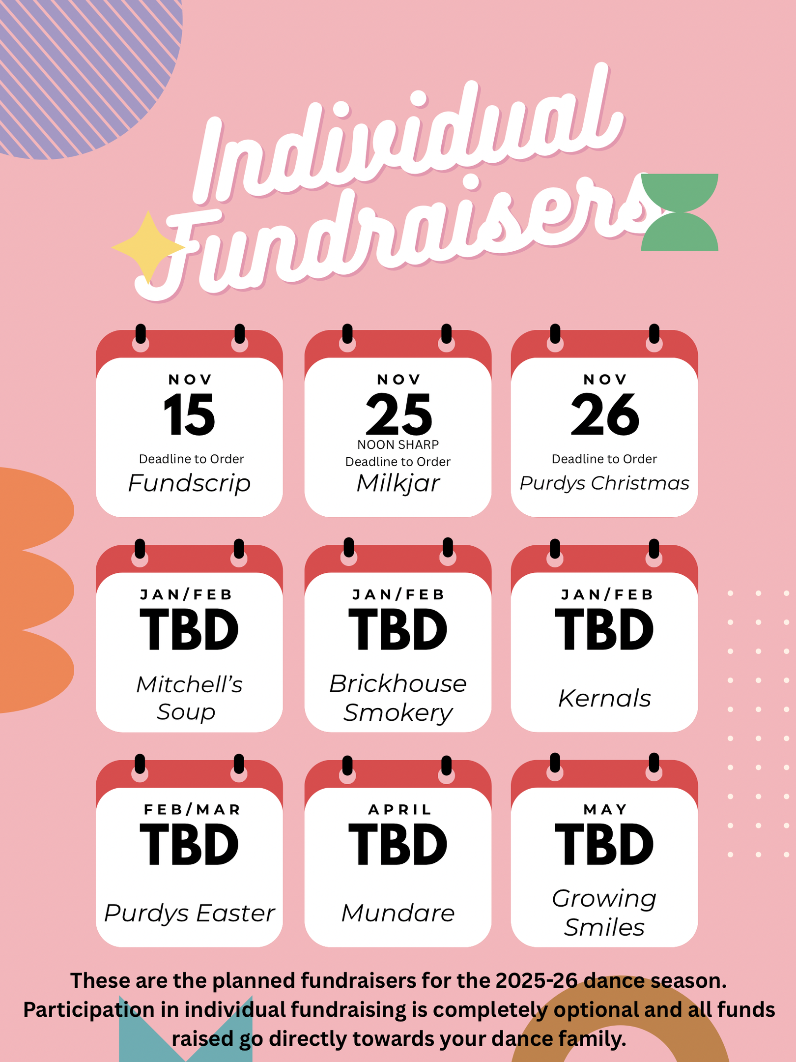 Fundraiser is open now. All orders are placed and paid for online using your individual family link. Individual Family links will be emailed out by Friday. Once received feel free to share your family link with friends and family, using your family link ensures that orders placed by your friends and family will be directly linked to your dancer! In the meantime here is the catalogue link. Pick Up is tentatively planned for December 13th. If you require a paper catalogue please reply email us to let us know!